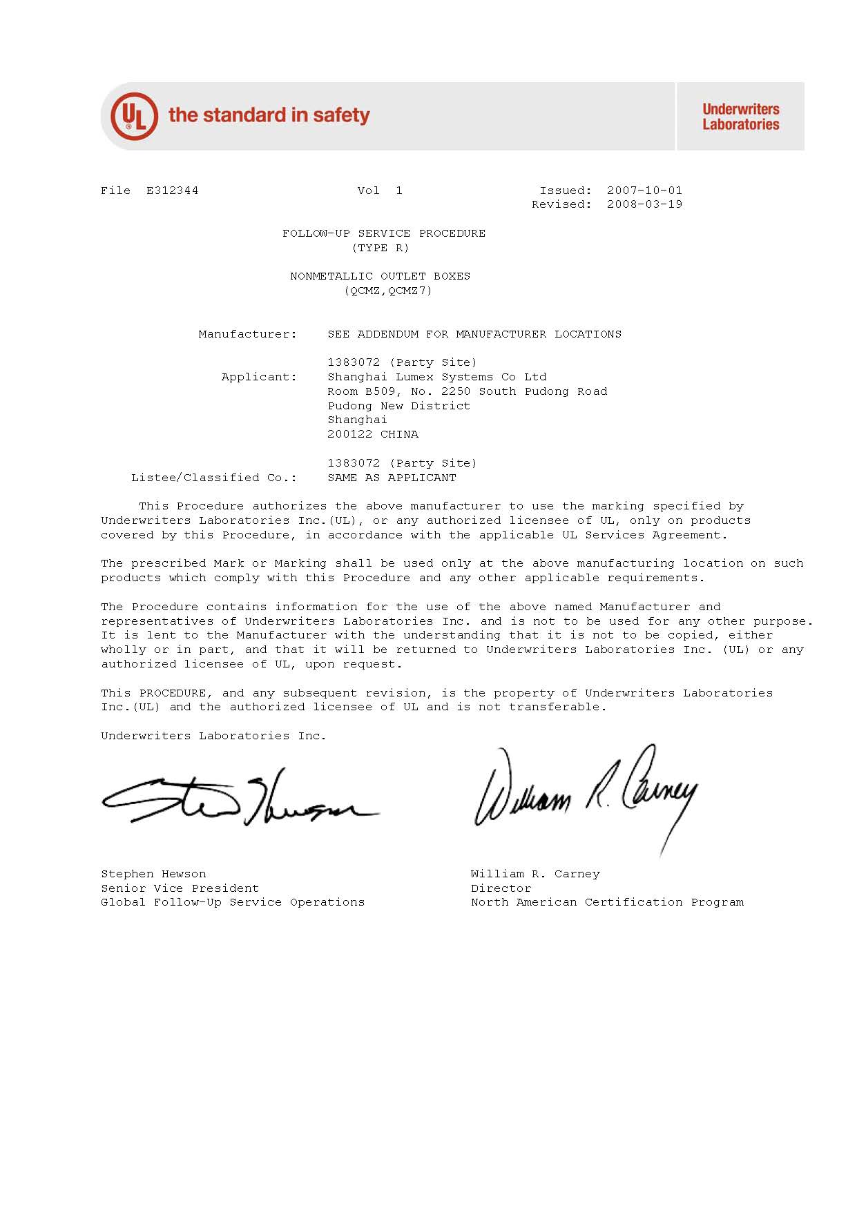Wallplate UL Certification